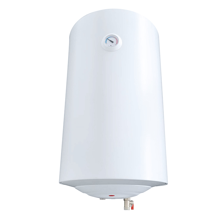 The cylinder vertical water heater has a simple appearance and a temperature control meter on the barrel body. The bottom end is covered with a single knob, and the operation is simplified.